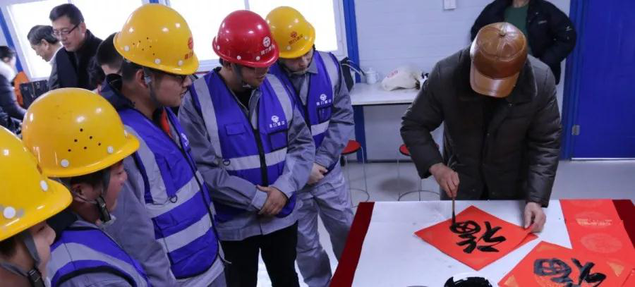 在與項(xiàng)目管理人員以及民工代表深入交流后,民盟市委領(lǐng)導(dǎo)向在場(chǎng)的工作人員送上新春的祝福,接著來(lái)自南京民盟書(shū)畫(huà)院的書(shū)法家們現(xiàn)場(chǎng)書(shū)寫(xiě)春聯(lián)以及福字,屋里屋外洋溢著喜悅的氣息,慰問(wèn)活動(dòng)在南京民盟歌舞團(tuán)藝術(shù)家的歌聲中走向高潮。