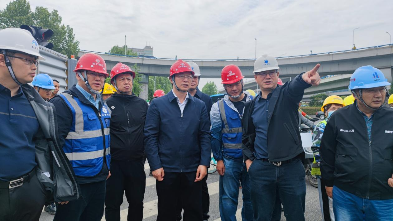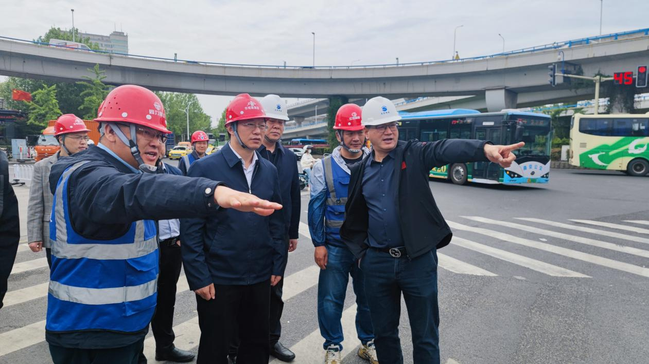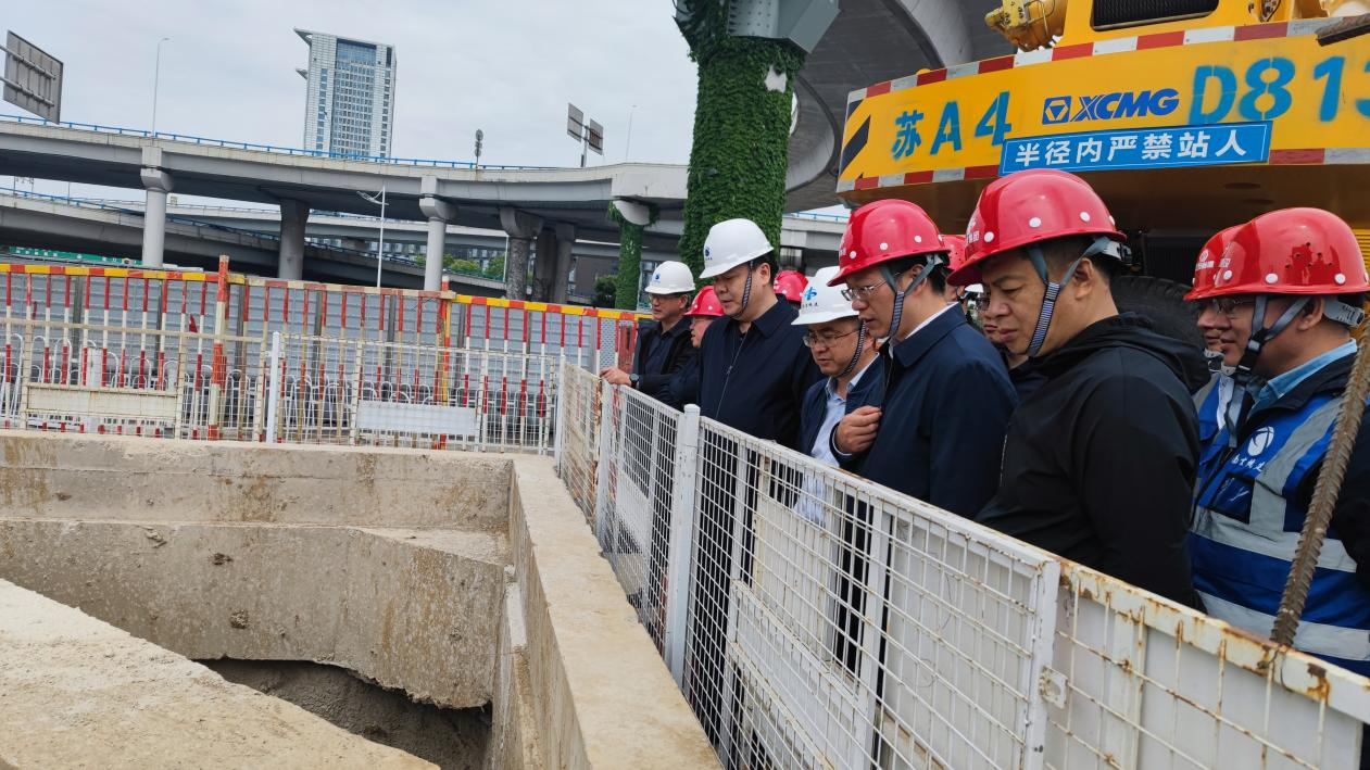 龔成林總經(jīng)理一行查看了中山北路現(xiàn)場(chǎng)路面交通現(xiàn)狀,龍江路基坑情況、聽(tīng)取了施工進(jìn)展情況匯報(bào),了解項(xiàng)目生產(chǎn)狀況及存在問(wèn)題。